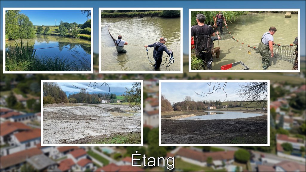 - La réhabilitation de l’étang communal (en cours de remplissage) et le réaménagement de la place de la poste (retour prochain du panneau d'informations)