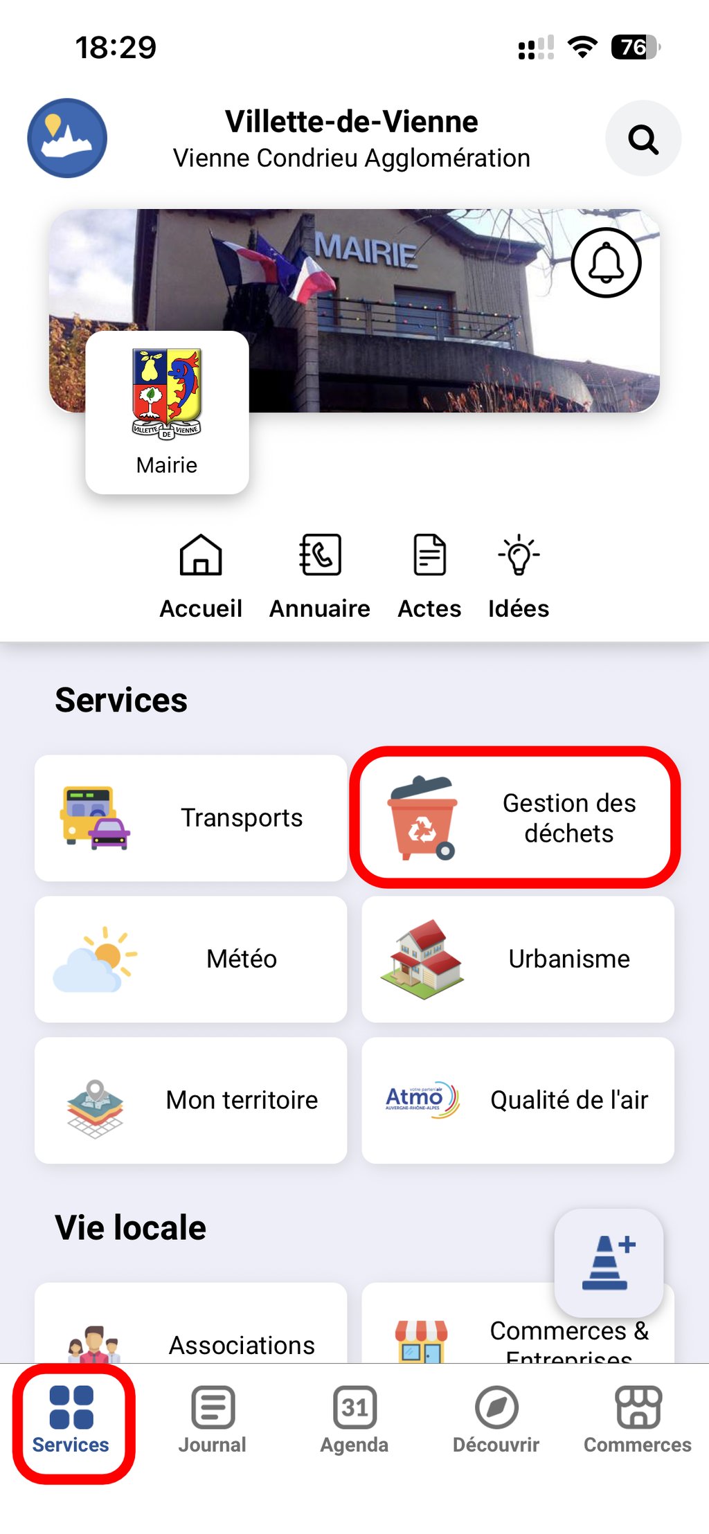 - L'application Intramuros dans la rubrique Services "Gestion des déchets" ☝