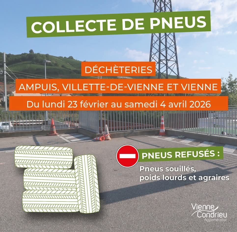 Ce printemps, Vienne Condrieu Agglomération organise une nouvelle campagne de collecte de pneus usagés, réservée aux particuliers du territoire de l’Agglo.