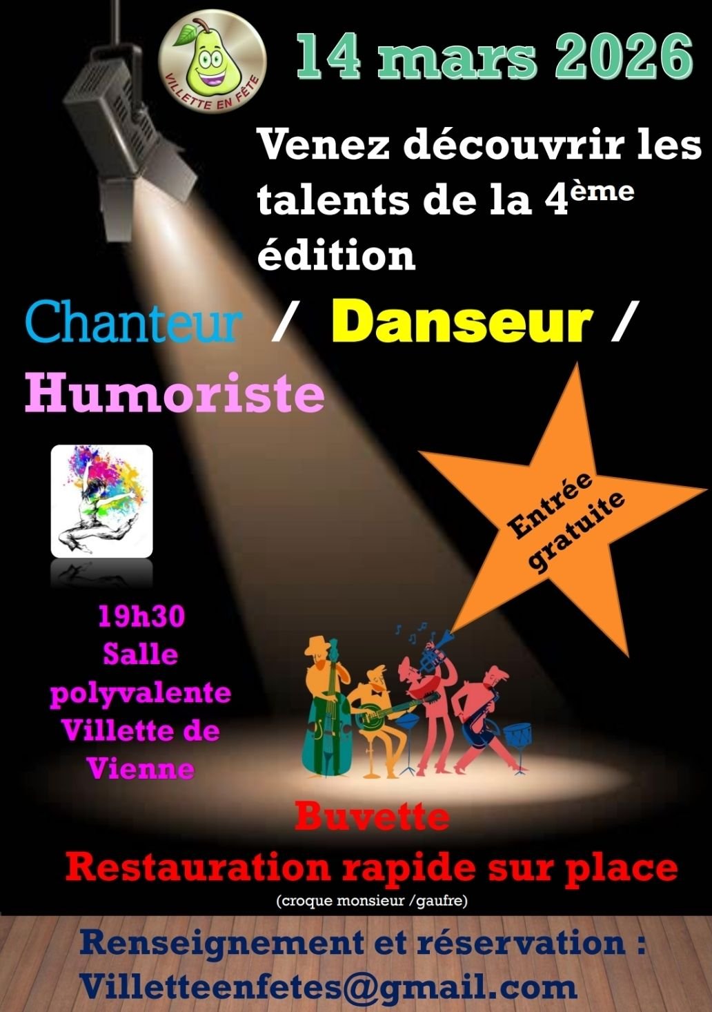 N'hésitez pas à réserver vos places en envoyant un mail : villetteenfetes@gmail.com